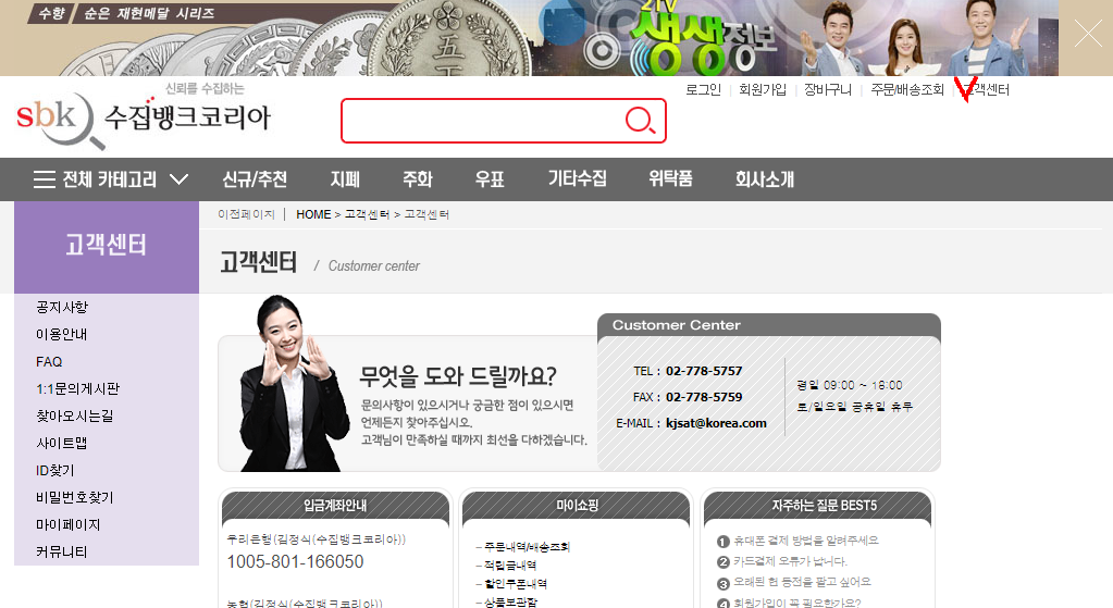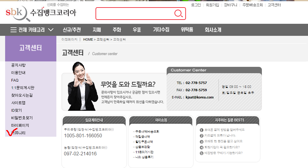 수집뱅크 코리아에서 고객센터로 가줍니다.